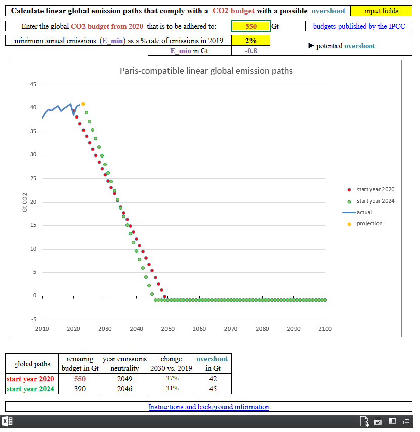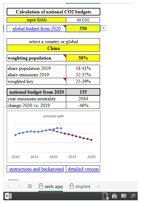 Web app for determining linear global reduction paths that comply with a predetermined CO2 budget: